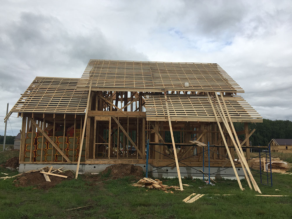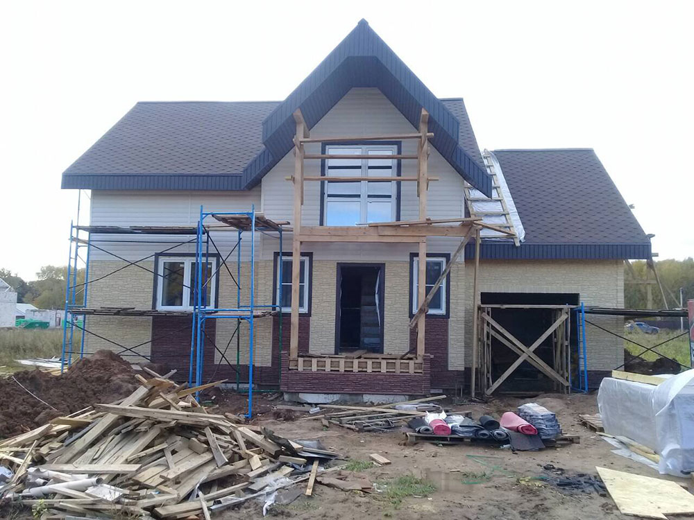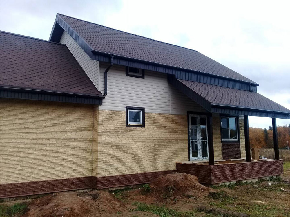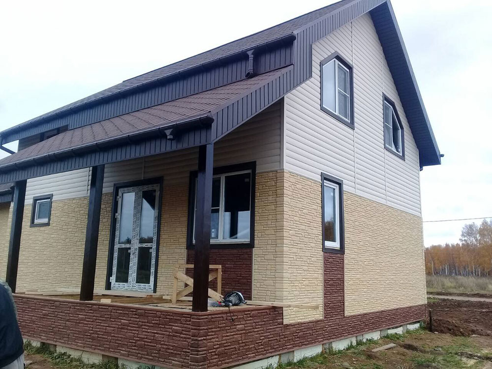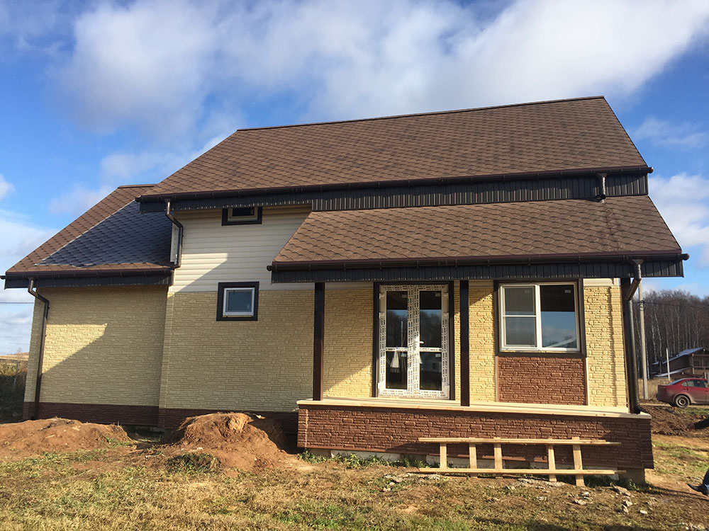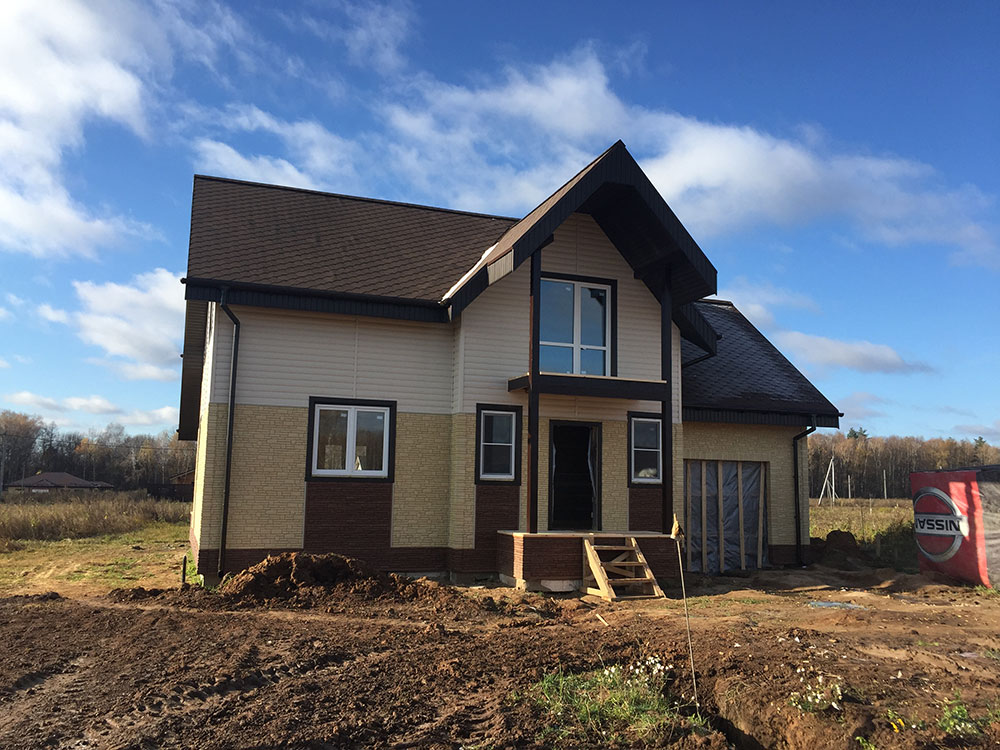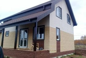 Дачный дом построен на ленточном фундаменте по каркасной технологии. Выполнена наружная отделка сайдингом.