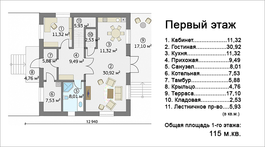 12.90 м х 10.28 м