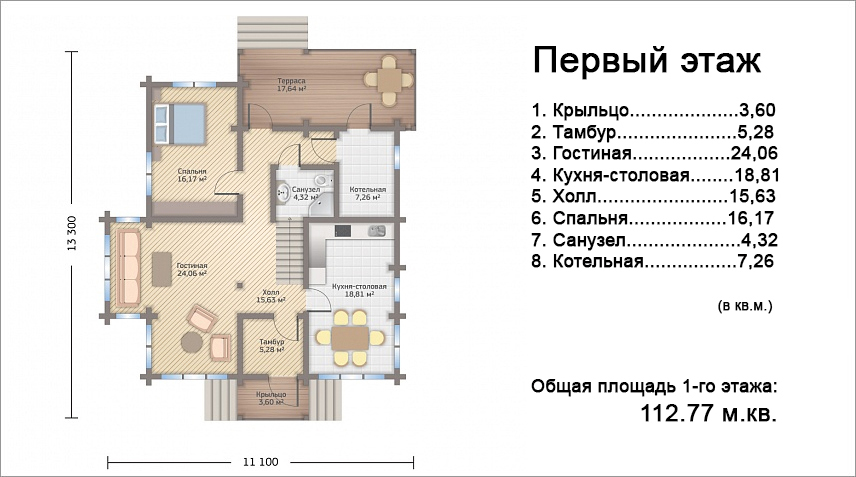 13.3 м х 11.1 м