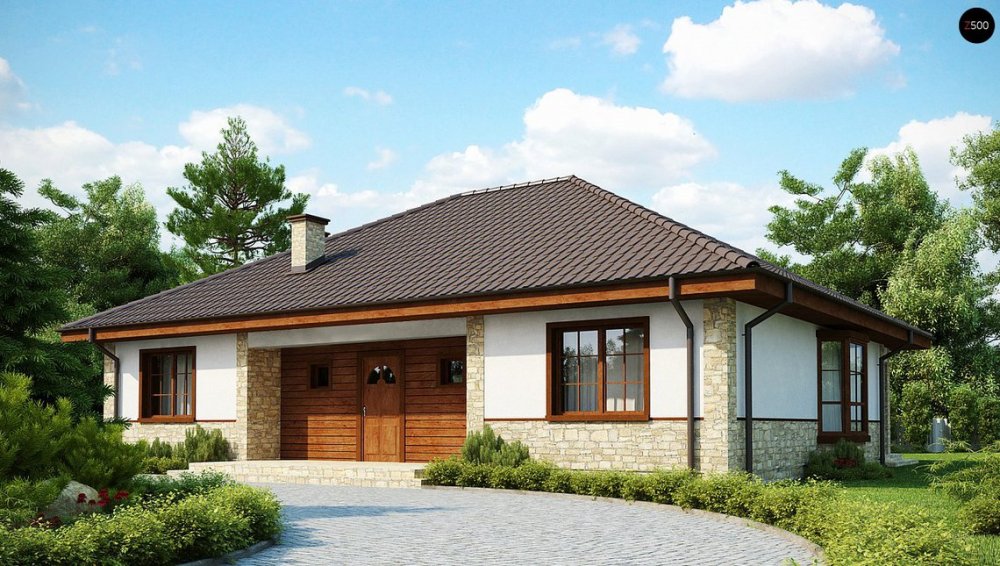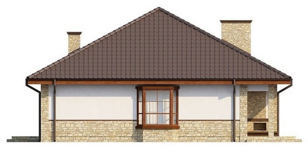 Проект одноэтажного дома с многоскатной кровлей, эркером и камином очень популярен. Традиционный архитектурный стиль и современный интерьер хорошо дополняют друг друга. В таком доме себя прекрасно будут чувствовать все члены большой семьи.
