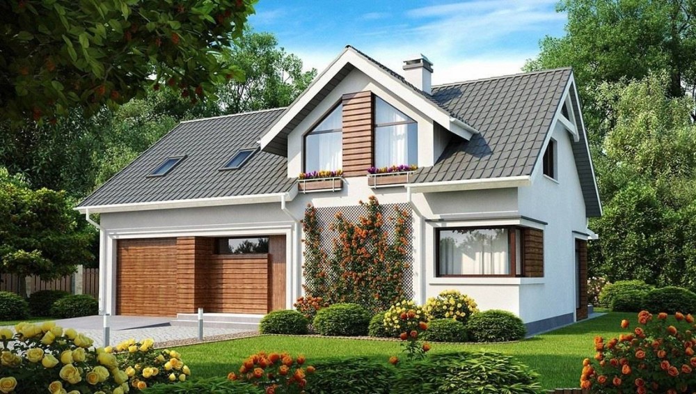 Терраса и открытая кухня, примыкающие к гостиной, визуально увеличивает пространство, и позволяют рационально организовать ежедневный быт. Кроме того, на этом же этаже находятся небольшая спальня, рядом с ней санузел. А на западной стороне дома расположен встроенный гараж для одной машины.