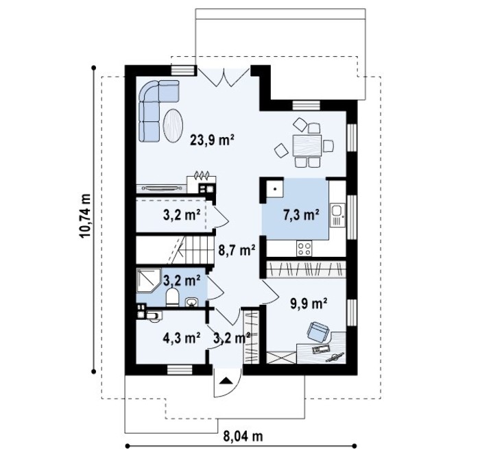 10.74 м х 8.04 м