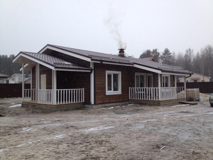 - Дом на монолитном фундаменте из сухой доски, с утеплением стен 200 мм и перекрытий 250 мм.