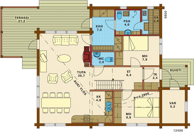 | Размеры дома: | 12.4 м х 9.8 м |