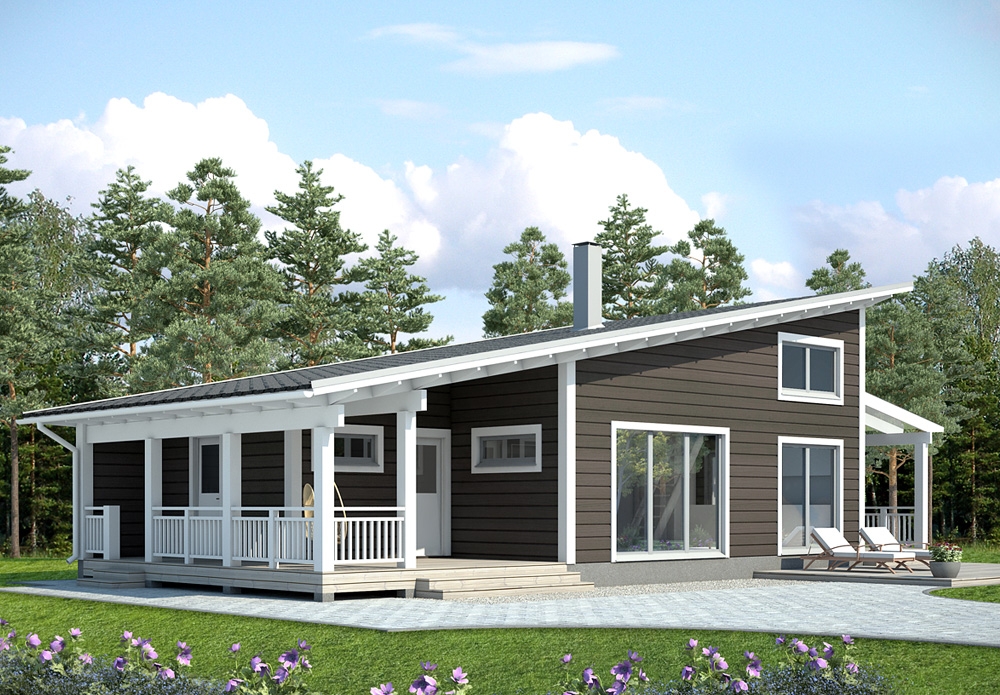 Наша строительная компания предлагает Вам построить каркасный дом 93.5 м2 с террасами площадью 47 м2.