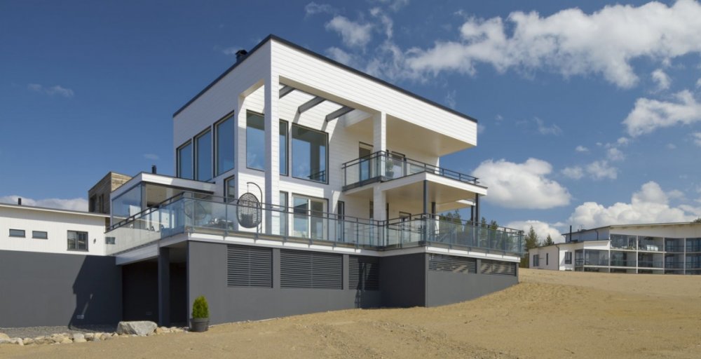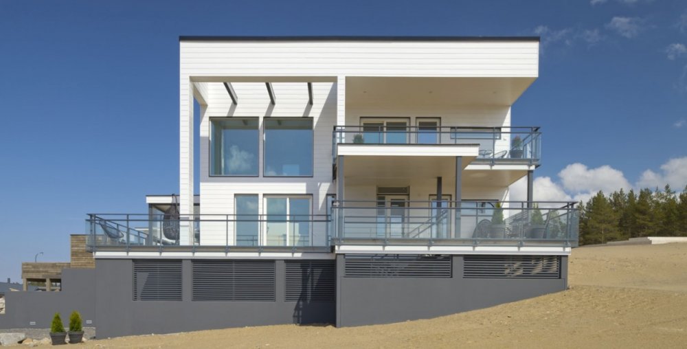 - Дом на монолитном фундаменте с водяными полами (шведская плита) из сухой доски с утеплением стен 200 мм и перекрытий 250 мм.